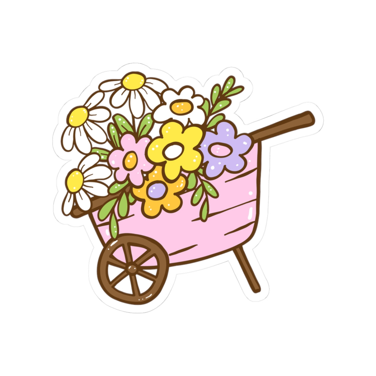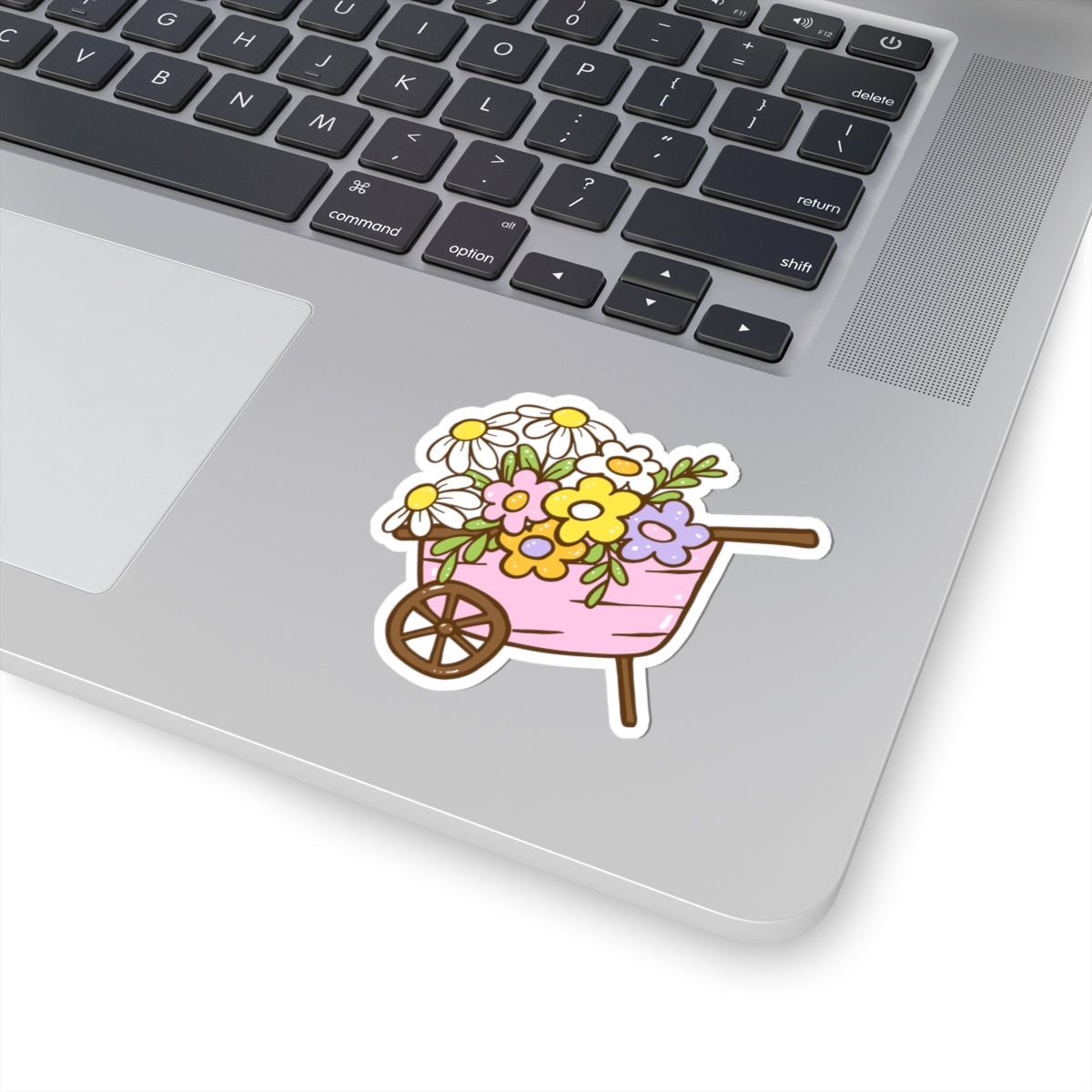 Floral Wheelbarrow Kiss-Cut Stickers | Cute Floral Decals for Scrapbooking, Laptop, Water Bottle, Gifts, Decor