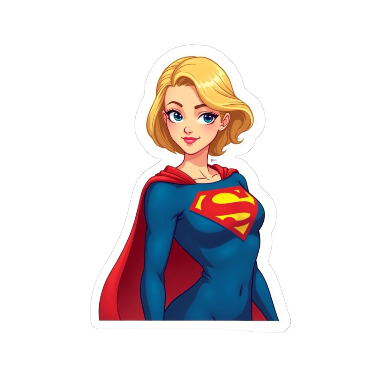 Heroic Supergirl Kiss-Cut Stickers, Cartoon Stickers, Laptop Decals, Superhero Decor, Gift for Comic Fans, Kids Room Decor