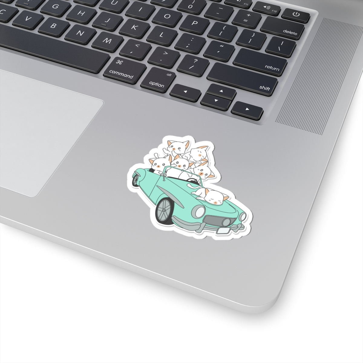 Kawaii Cat Car Kiss-Cut Stickers | Cute Cat Decor, Laptop Stickers, Gift for Cat Lovers, Fun Car Stickers, Animal Art