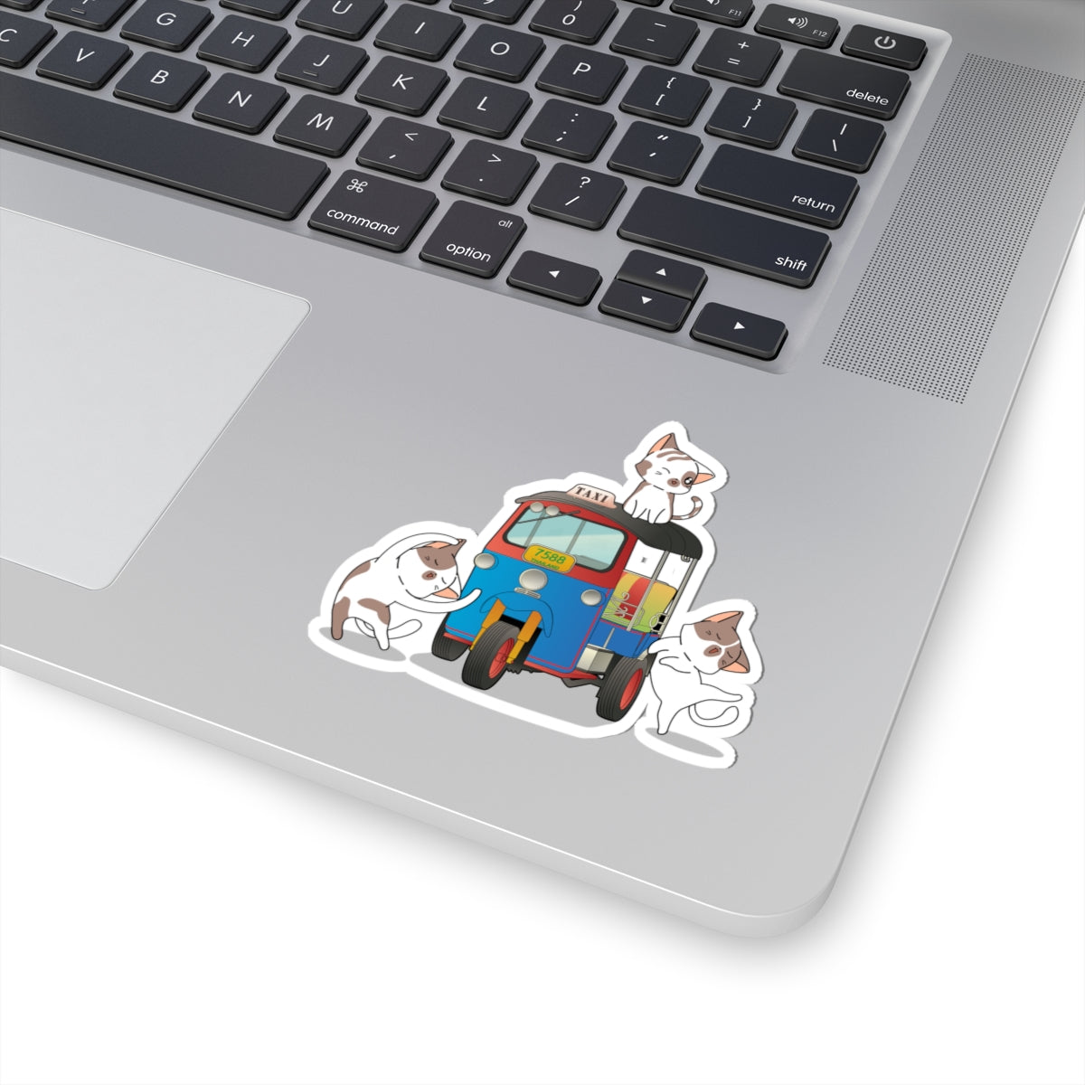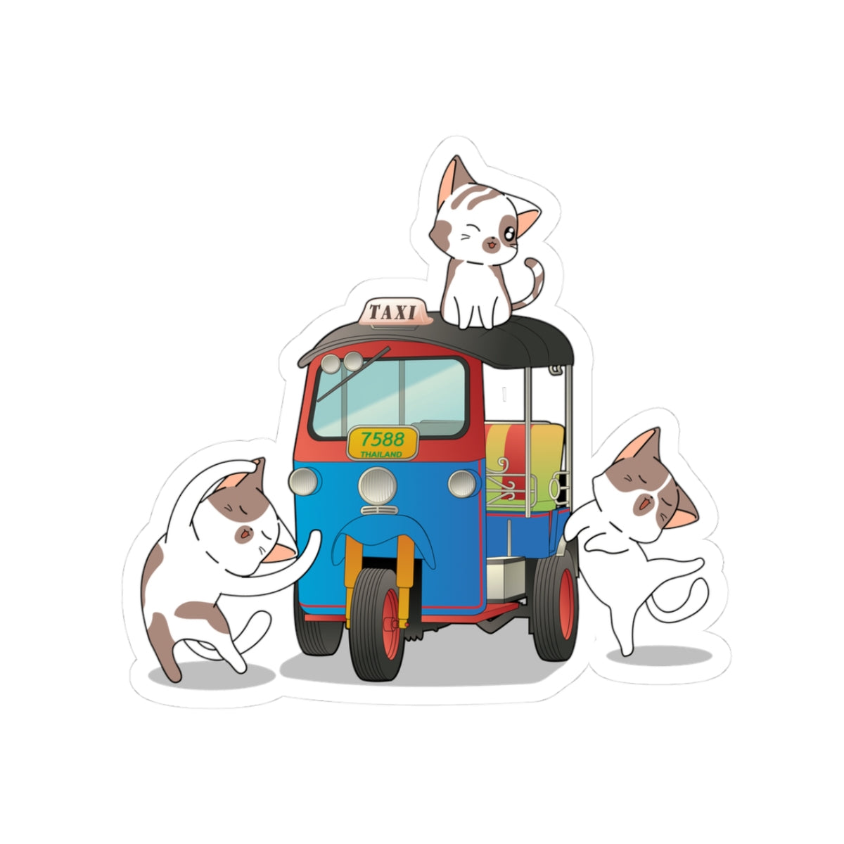 Playful Cat Taxi Stickers, Cute Animal Decals, Laptop Stickers, Cat Lover Gifts, Fun Home Decor